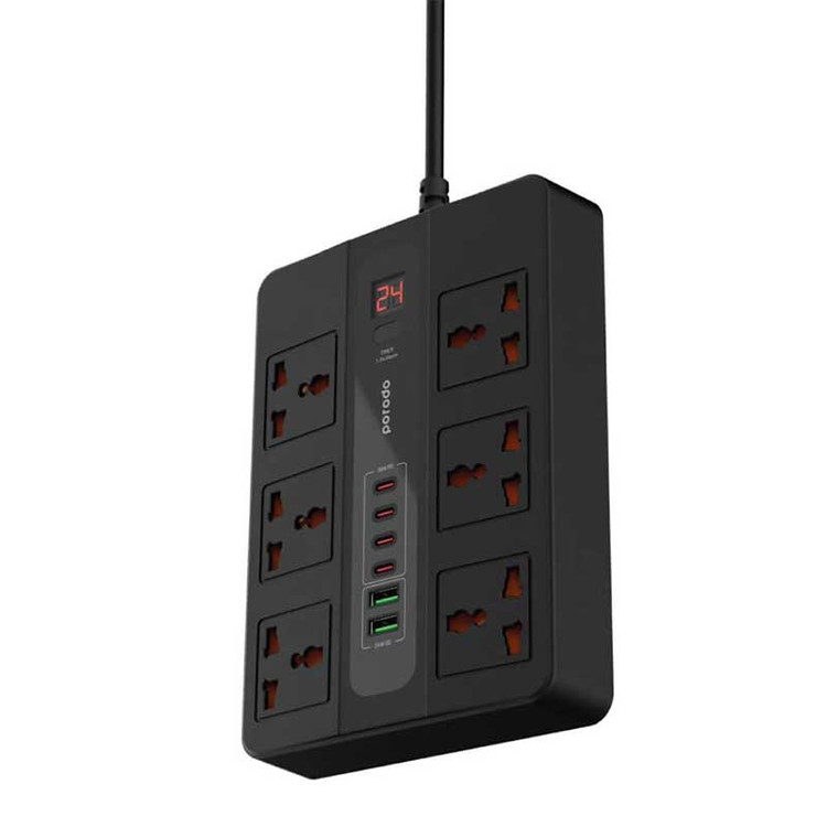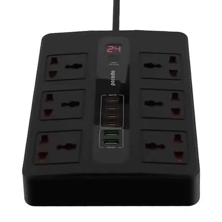 دارای 6 عدد پریز برق یونیورسال با امکان استفاده از انواع دوشاخه و سه شاخه ، 4 عدد پورت Type-C و 2 عدد پورت USB-A است .