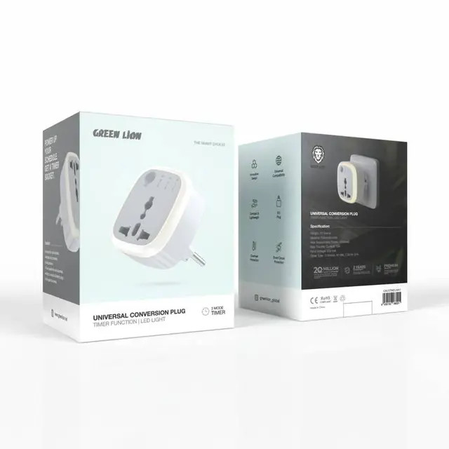 مبدل 3 به 2 چراغ دار تایمر دار گرین لاین Green Lion Universal Conversion Plug