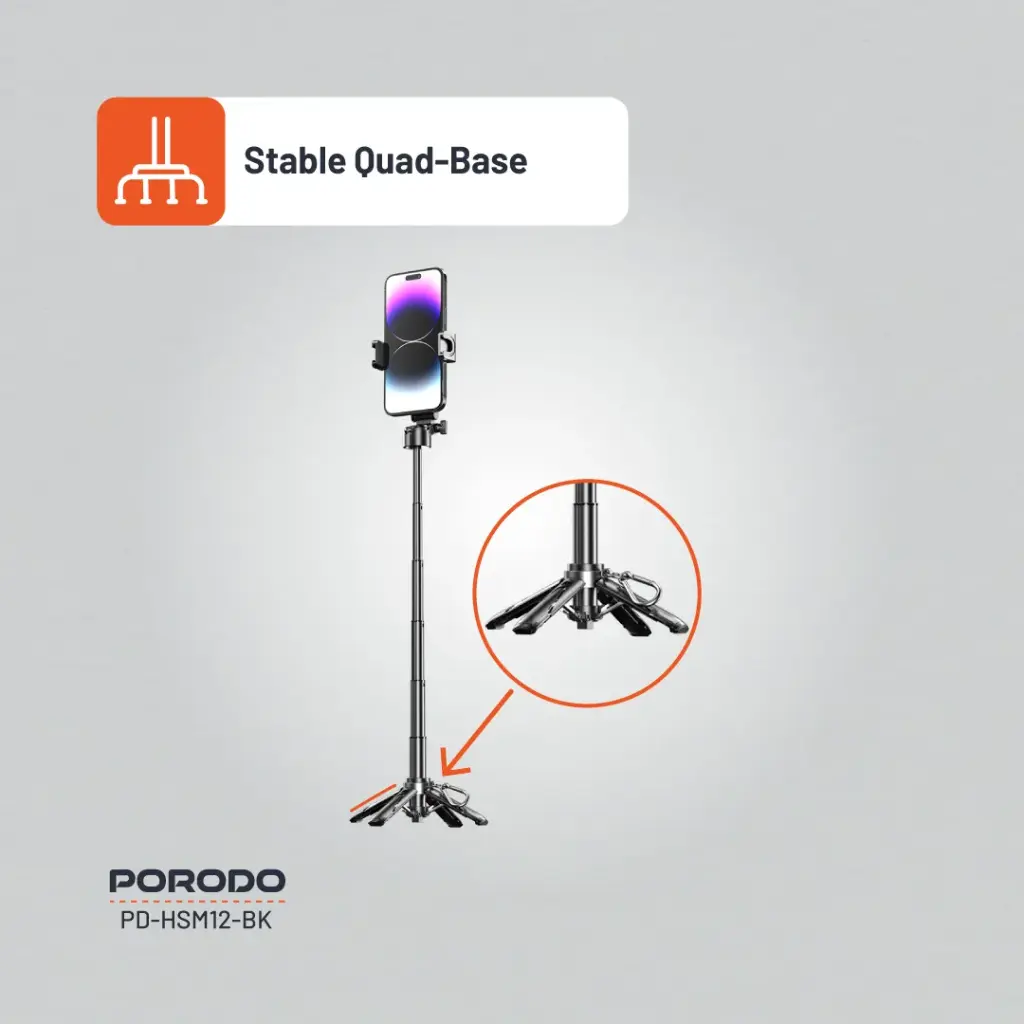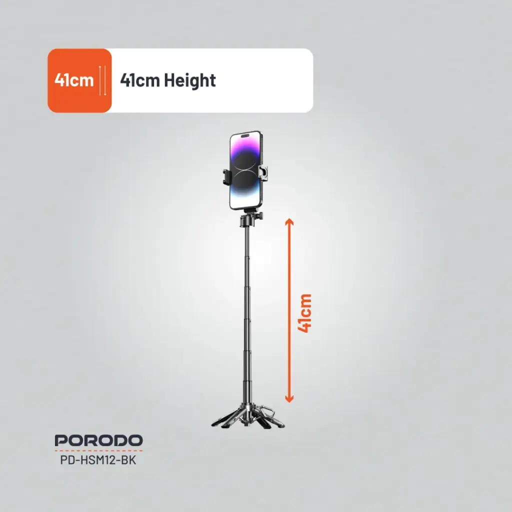 هر لحظه را با چوب سلفی تاشو Porodo ثبت کنید، ابزاری بسیار همه کاره و بادوام برای هر علاقه مندان به عکاسی. ساخته شده با ABS ممتاز و آلیاژ آلومینیوم، یک سه پایه قابل افزایش با چهار پایه محکم برای عکسبرداری ثابت است. یک شیب قابل چرخش 360 درجه زوایای پویا را فراهم می کند، در حالی که شاتر بی سیم بلوتوث V5.2 شما را قادر می سازد با یک بار شارژ تا 5000 عکس بگیرید. به لطف باتری قابل شارژ داخلی و طراحی جمع و جور تاشو، برای ماجراجویی در حال حرکت عالی است. iOS 4 و بالاتر و اندروید 8 و بالاتر برای اطمینان از خلاقیت بی حد و حصر با این چوب سلفی کاملاً سازگار هستند.