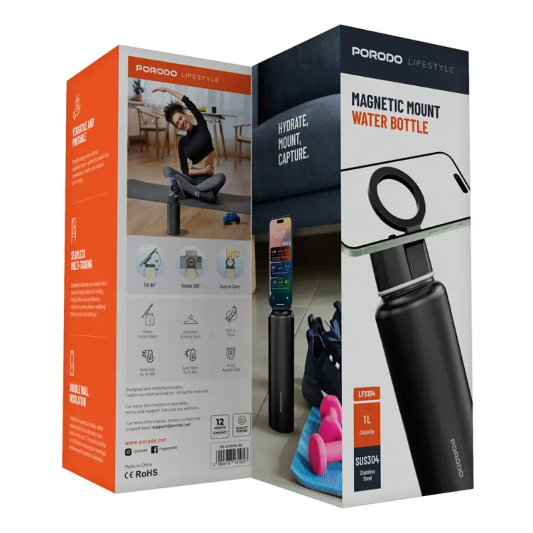 بطری آب استیل به همراه هولدر مگسیف پرودو (PD-LFST134)Porodo Lifestyle Magnetic Mount Water Bottle