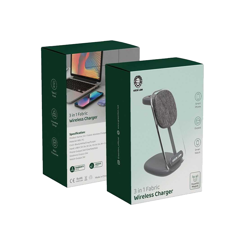 شارژر بی سیم 15 وات مگ‌سیف 3 در 1 گرین | Green 3 In 1 fabric Wireless Charging (3548)