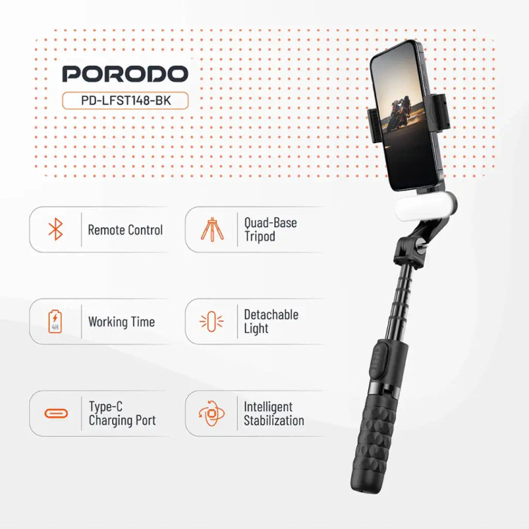 گیمبال تثبیتکننده Porodo QuadBase - مشکی