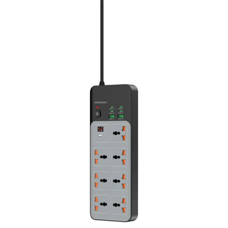 چندراهی پاور یونیورسال Porodo 3000W | 7AC با 6 پورت USB (4C + 2A) - خاکستری