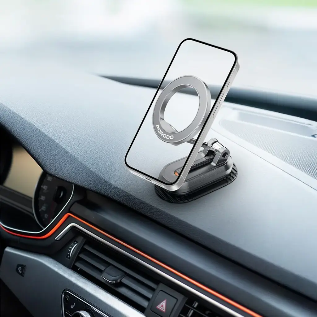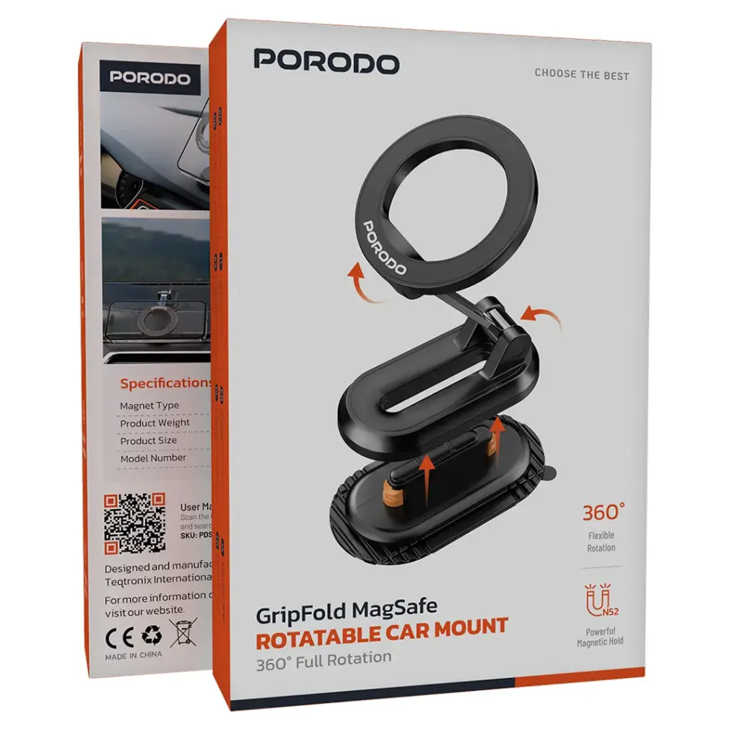 هولدر مگسیف خودرو با چرخش 360 درجه پرودو(PDSKR06)Porodo GripFold MagSafe Rotatable Car Mount 360° Full Rotation – Black