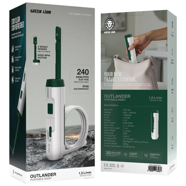 نسخه سفید دستگاه شستشوی قابل حمل Green Lion Outlander بهترین گزینه برای تمیز نگه داشتن شماست و کل فرآیند را راحتتر و بدون دردسر میکند. این دستگاه از پلاستیک ABS و سیلیکون بادوام ساخته شده است و دارای یک باتری 1600 میلیآمپر ساعتی است که میتواند در کمترین حالت 240 دقیقه دوام بیاورد، به علاوه زمان شارژ سریع 2.5 تا 3 ساعت از طریق USB Type-C. این دستگاه در دو الگوی اسپری مختلف کار میکند و همچنین میتواند در طول فرآیند سطوح فشار آب متفاوتی ایجاد کند، بنابراین یک تجربه شخصیسازی شده را برای کاربران به همراه سرعت جریان 1.3 لیتر در دقیقه برای تمیز کردن کامل فراهم میکند. یک لوله آب 1.2 متری به کاربر آزادی و راحتی حرکت میدهد و نازل تاشو با قلاب پشت چسبدار، نگهداری و حمل و نقل آسان را فراهم میکند. این دستگاه دارای رتبه IPX6 برای ضد آب بودن است و بنابراین میتوان بدون هیچ نگرانی، حتی در شرایط مرطوب، از آن استفاده کرد. دستگاه شستشوی قابل حمل Green Lion Outlander وسیلهای دلپذیر و قابل اعتماد برای بهداشت شخصی است که میتوانید در هر کجا که هستید، چه در خانه و چه در جاده، روی آن حساب کنید.